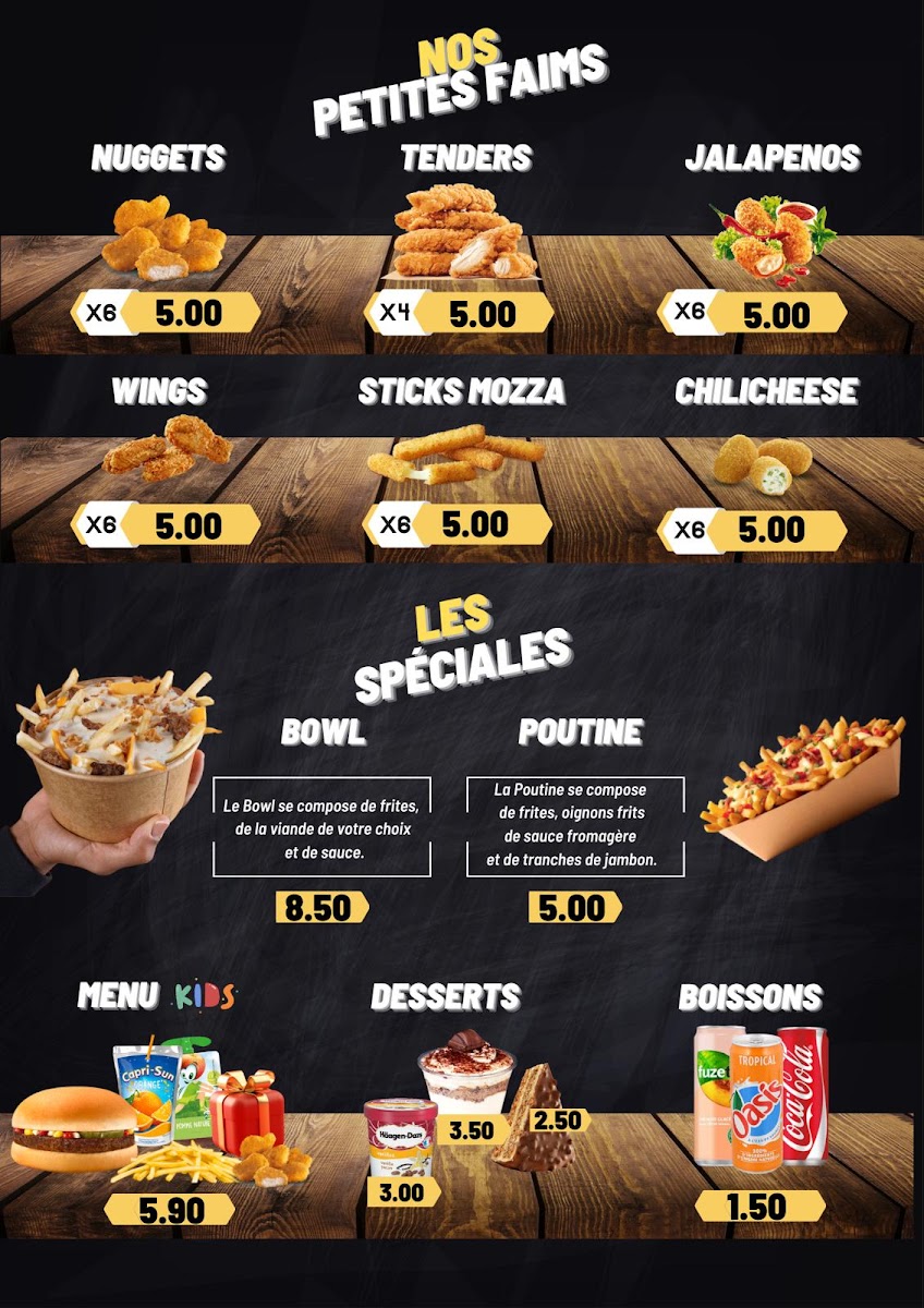Don't forget to try their Petite Faims, such as the Tenders, Nuggets, Stick Mozzarella, or Jalapenos, perfect for a quick snack or to share with friends.