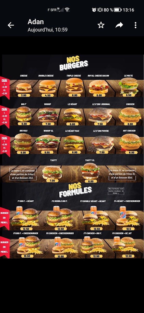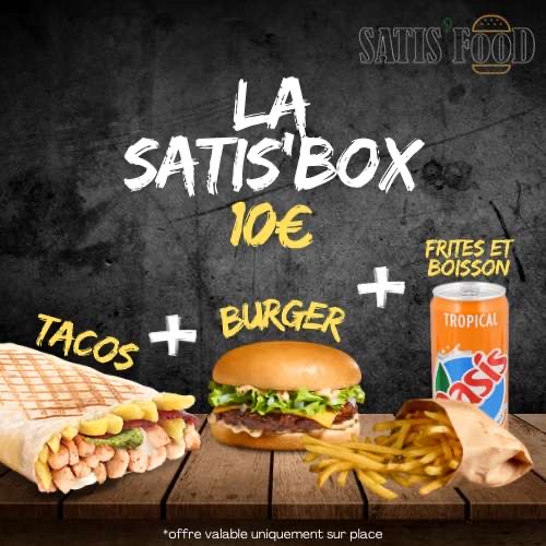 If you're in the mood for a burger, Satis'Food has you covered with options like the Royal Cheese Bacon Burger, Big Max Burger, or the Whoop XL Burger. Each burger is made with quality ingredients and is sure to leave you feeling satisfied.